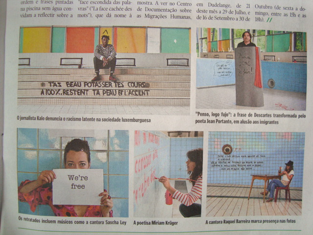 Esta muestra fotográfica cuyo tema es la migración y la democracia fue realizada en la antigua piscina municipal de la ciudad de Dudelange y actualemnte esta por ser demolida. "Queriamos hacer una especie de representación de diferentes comunidades de Luxemburgo. Frases en diferentes idiomas desde el luxemburgués , pasando por el francés, italiano, alemán" (Dario Cieol).
