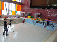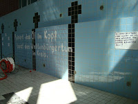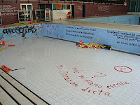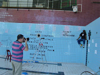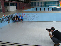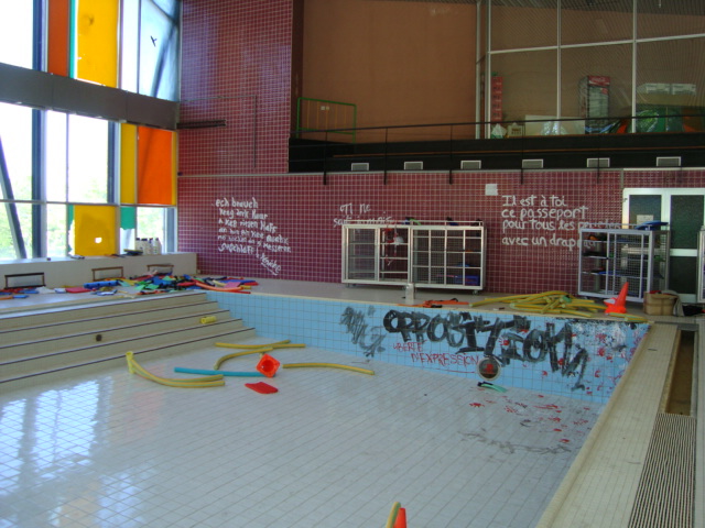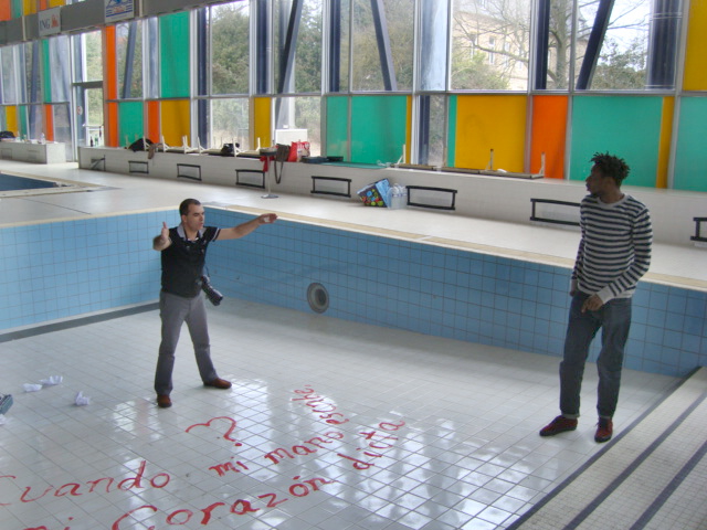 l'ancienne piscine municipale dans la ville de Dudelange et qui est actuellement en cours de démolition. "Nous voulions faire une sorte de représentation des différentes communautés du Luxembourg. Phrases dans différentes langues à partir du luxembourgeois, vers le français, italien, allemand" (Dario Cieol).